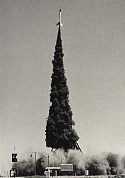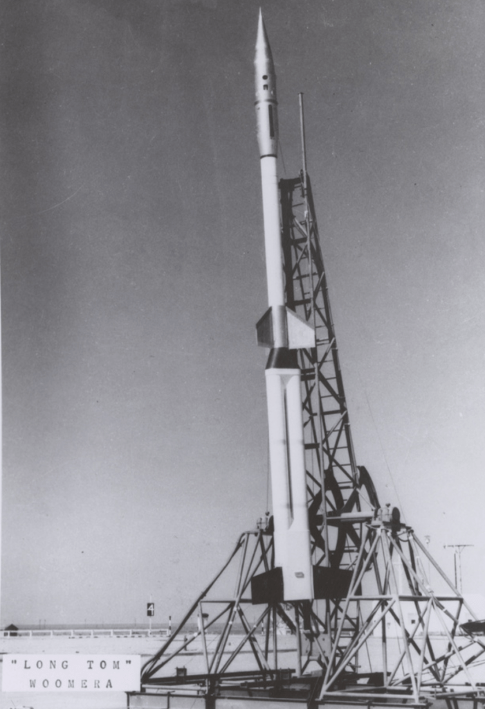 Launch of a Skylark from Woomera’s Range E in 1957. It reached an altitude of about 129 Km.